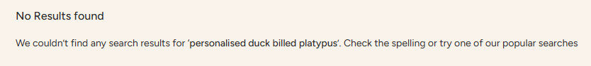 Instead of nothing with your ‘no matches’ message, think about offering a different route, whether that’s products that match some of the search query, relvant category choices or products based on their previous history on your site.