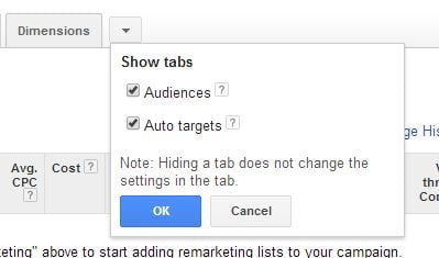 TIP! If at first you do not see the ‘Audiences’ tab you will need click the downwards arrow next to the last tab, ‘Dimensions’. You should then be able to select ‘Audiences’ from the drop down list.