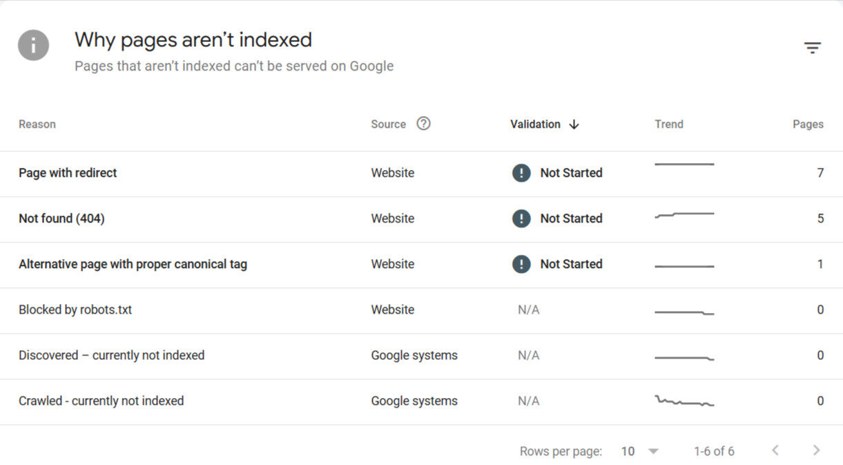 If Google Search Console and Bing have problems indexing certain pages, they’ll notify you, and you can then fix them: